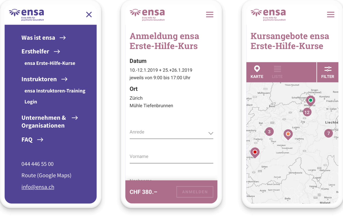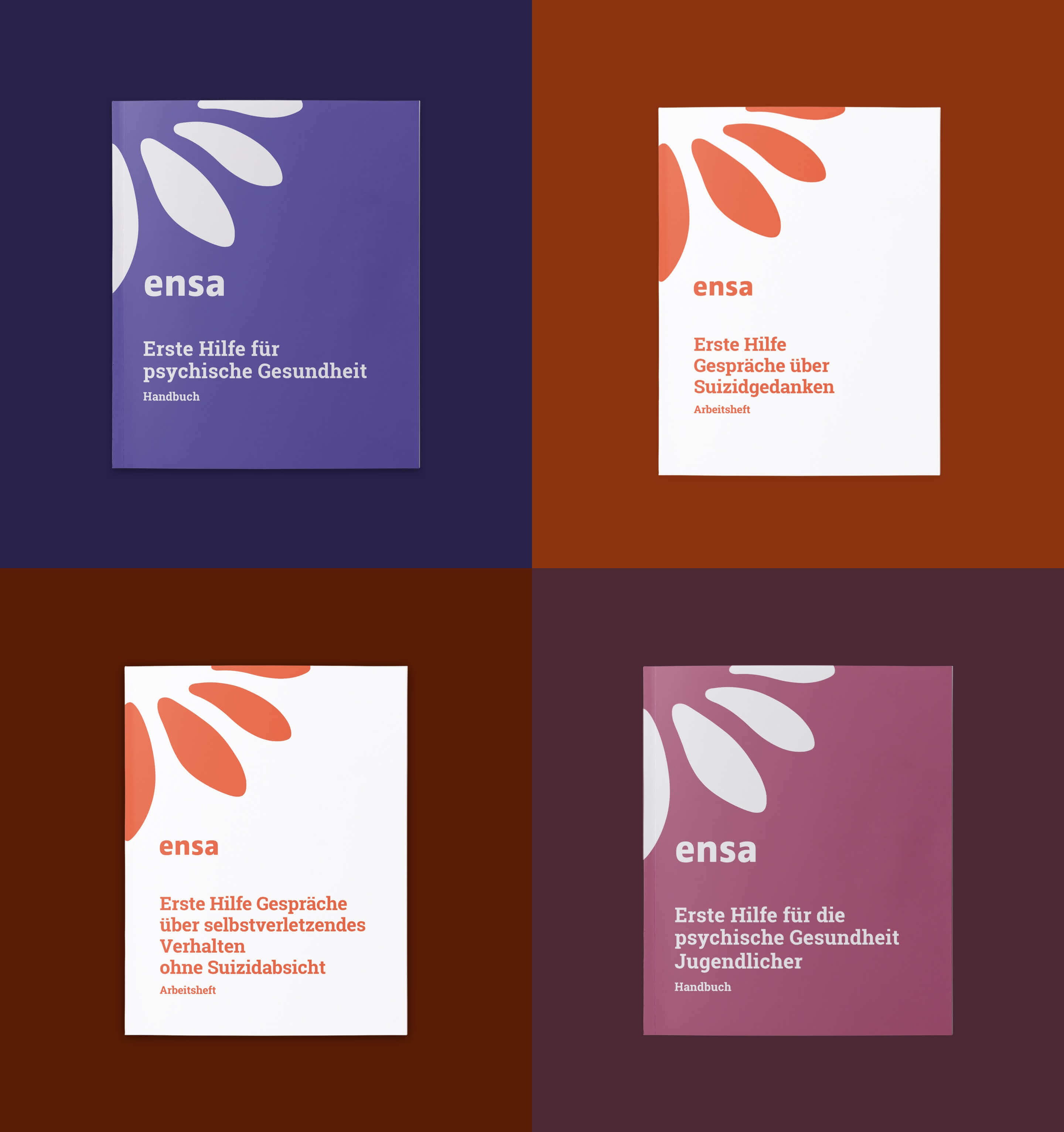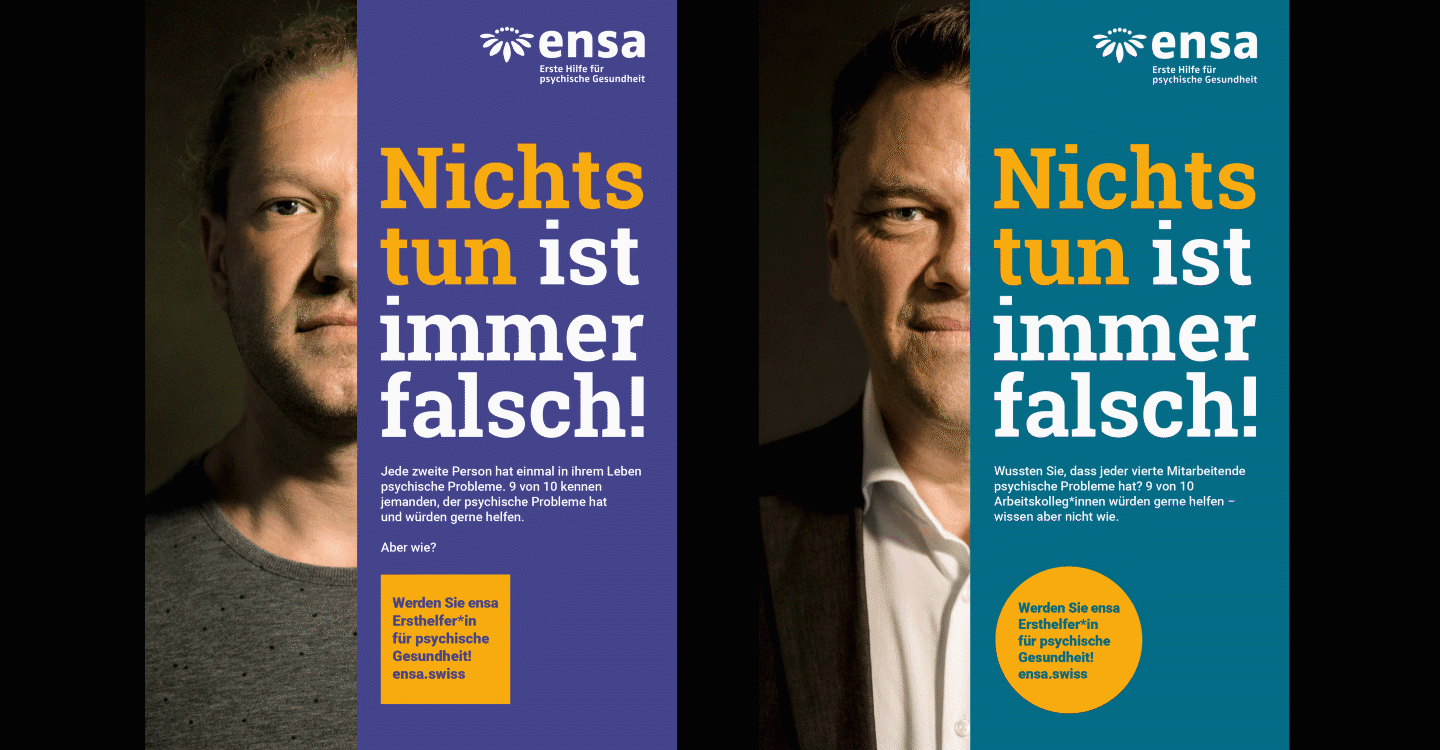 Teilnehmerinnen und Teilnehmer lernen im 12-stündigen Kurs, wie sie psychische Probleme rechtzeitig erkennen, auf Menschen zugehen und Hilfe anbieten können. «ensa» heisst übrigens in einer der vielen Sprachen der Aborigines «Antwort» – und genau das trifft die Marke auf den Punkt: wir liefern Antworten. Gleichzeitig ist es eine Referenz der Schweizer Version auf das ursprüngliche australische Mental Health First Aid Programm. Für Naming, Markenaufbau und -positionierung sowie deren Einführung im B2B (Firmenkurse) und B2C (Kurse für Private) zeichnen wir uns von Beginn weg verantwortlich und begleiten Pro Mente Sana beratend und ausführend in dieser wichtigen Sache.