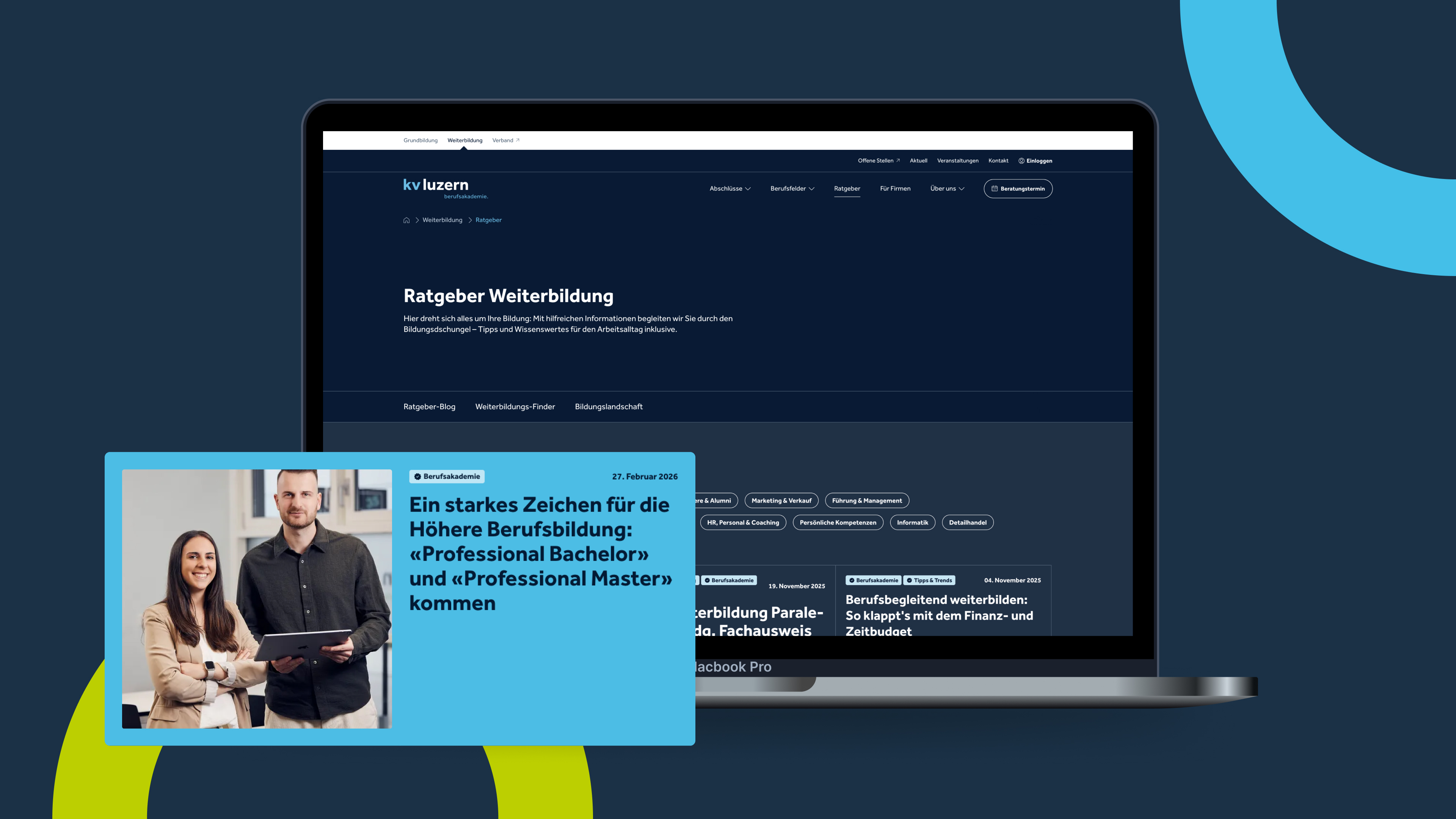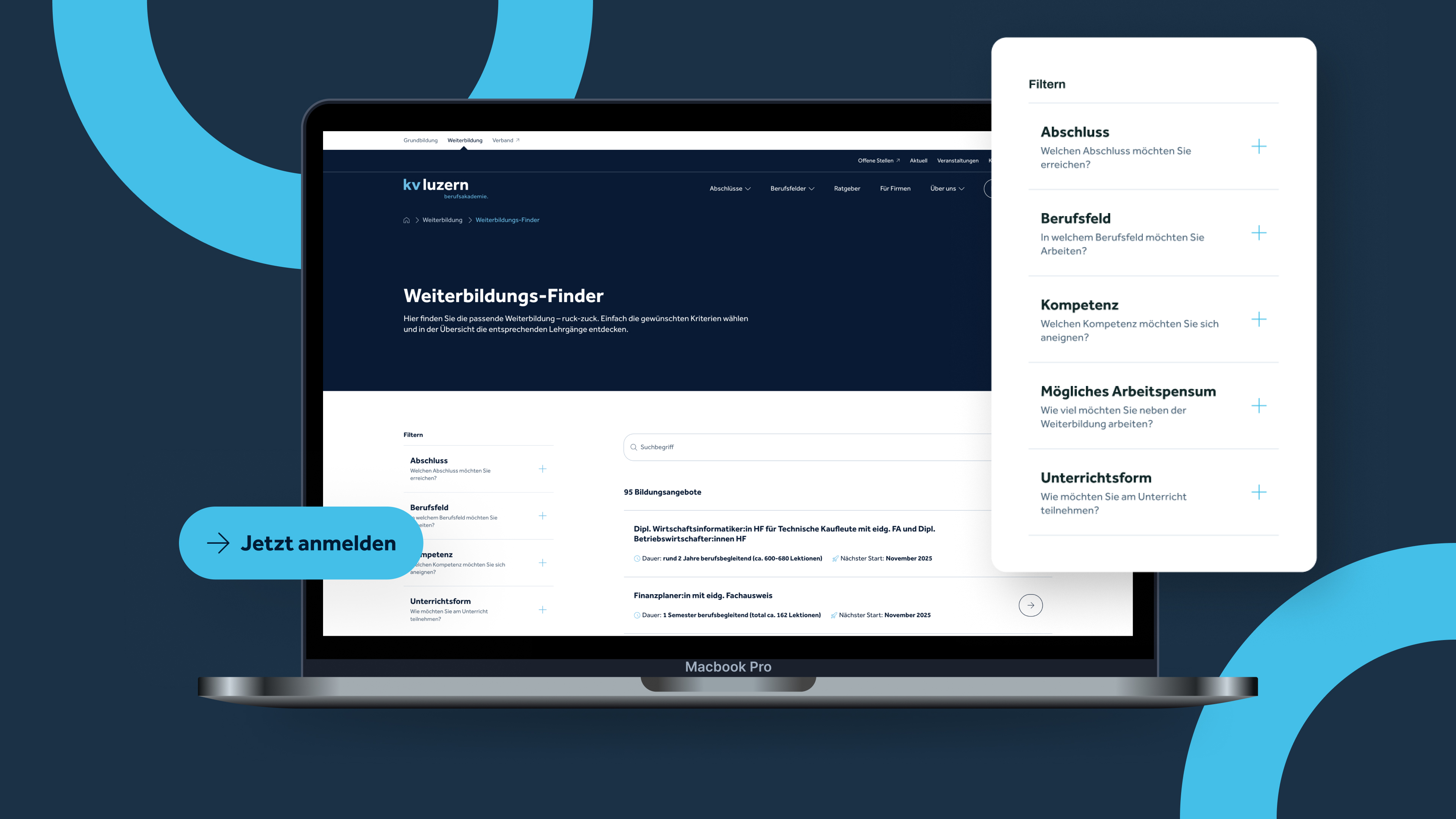 Eine moderne Webseite, die Leads generiert, die passende Weiterbildung ruck-zuck auffindbar macht und den Weg im Bildungs-Jungle erleichtert? Für die KV Luzern Berufsakademie haben wir eine neue Webseite realisiert, die eben mehr ist als «nur» eine Webseite.