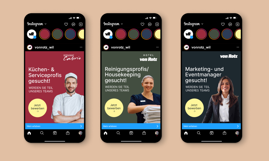 Wir berieten das Unternehmen bei der Markterschliessung und schärften die Positionierung des neuen Angebots. Wir gaben den neuen Marken ein eigenständiges modernes Erscheinungsbild und setzten auf wertige Brands, die gut miteinander harmonieren. Wir realisierten vier neue Webseiten (Design, Programmierung, Text), sämtliche physische und digitale Kommunikationsmaterialien, verantworteten die initiale Medienarbeit und zur Besetzung der neuen Positionen kreierten wir eine erfolgreiche Recruiting-Kampagne.