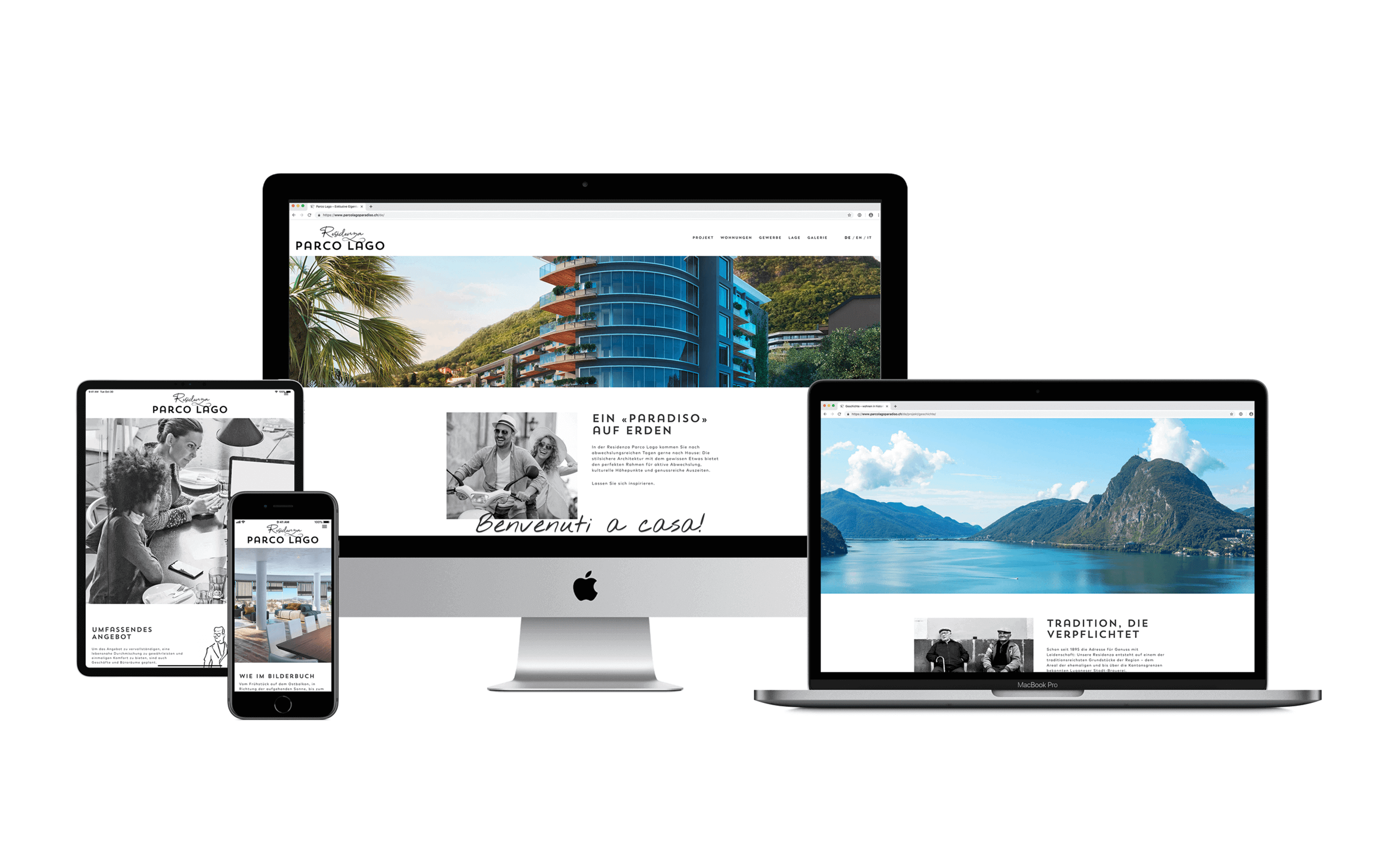 Partner & Partner erhielt aufgrund der langjährigen Erfahrung im Schweizer Immobilienmarkt den Auftrag, die Identität und sämtliche Marketingmassnahmen für die Residenza Parco Lago neu zu konzpieren und umzusetzen.