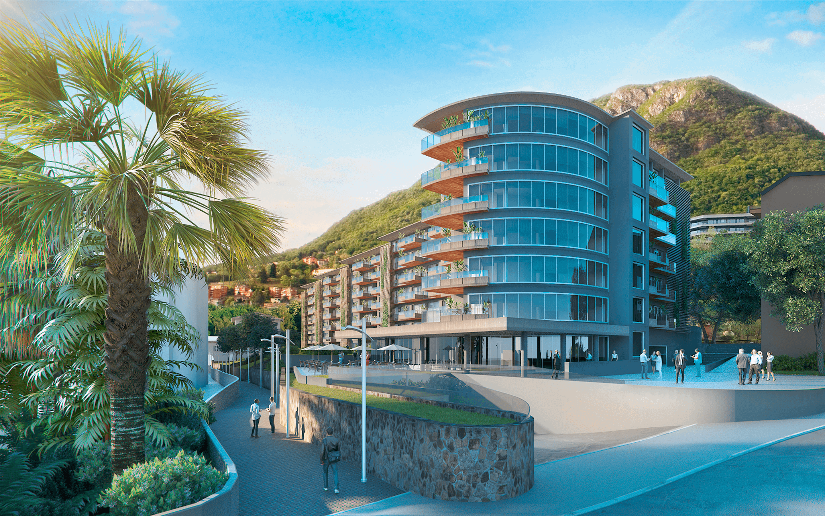 Ein Vorzeigeprojekt sowohl für Vermarktung als auch Architektur ist die Residenza Parco Lago in Lugano-Paradiso. Die Überbauung mit 132 Eigentumswohnungen an bester Lage wird von PSP Swiss Property realisiert. Mit ihrem Portfolio im Wert von rund 7.7 Mrd. Franken gehört das Unternehmen zu den führenden Immobiliengesellschaften der Schweiz mit Liegenschaften vorwiegend in Zürich, Genf, Basel, Bern und Lausanne.