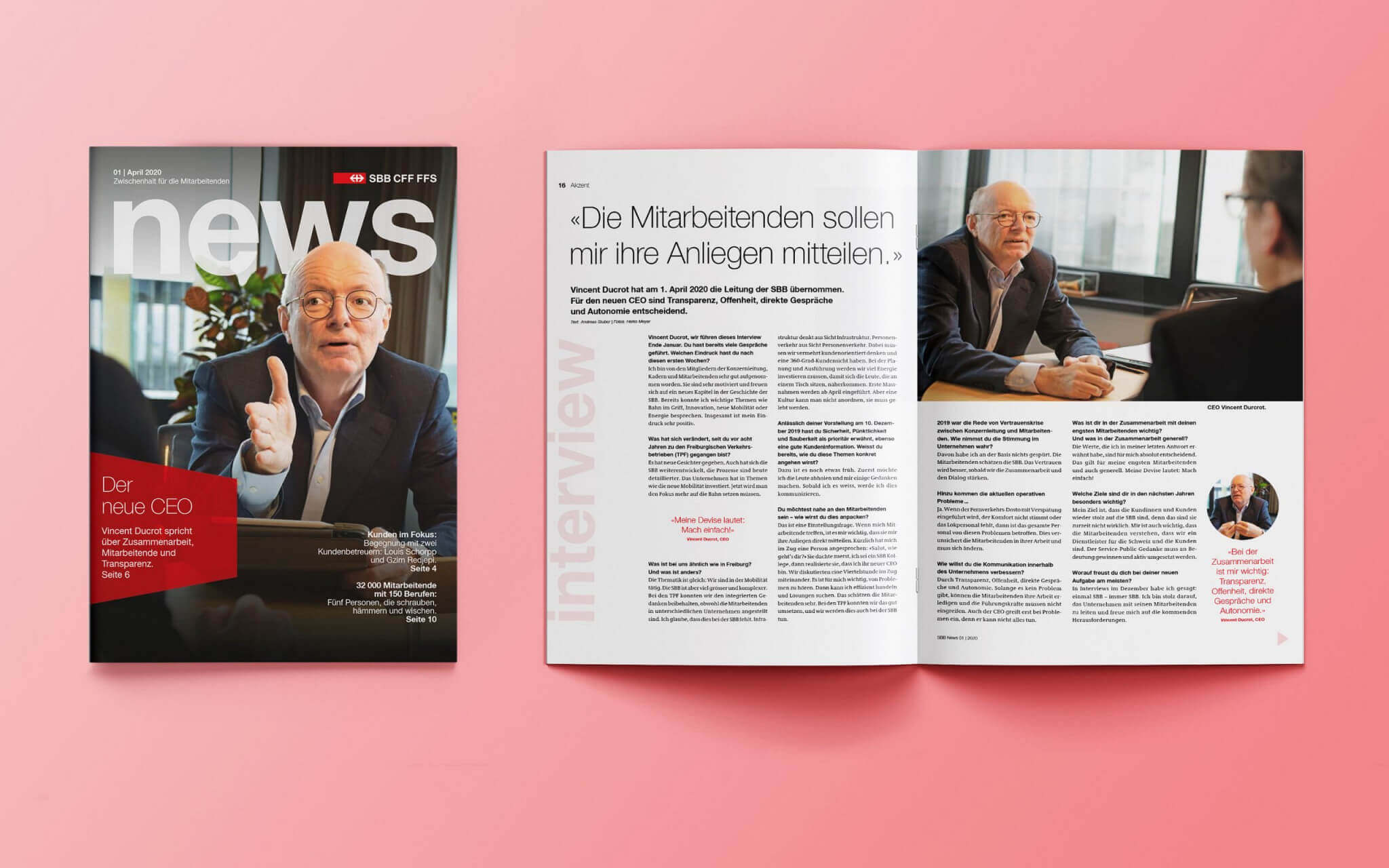 Das Magazin setzt sich aus den spannendsten und informativsten Inhalten der Online-Plattform «SBB news» zusammen. Es erscheint vierteljährlich auf Deutsch, Französisch und Italienisch in einer Auflage von 21’500 Exemplaren. Bislang wurde das «news» SBB-intern produziert. Mit der Ausgabe 01 | April 2020 übernimmt nun Partner & Partner diese Aufgabe.